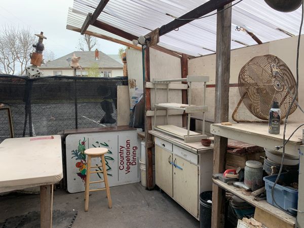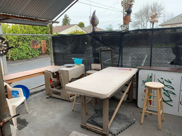 The outdoor work table and kick wheel