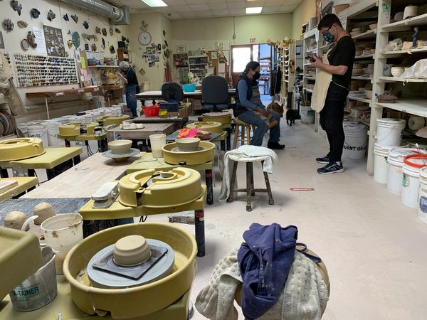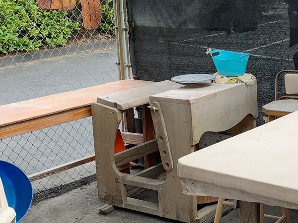 Pottery wheel set-up for COVID . Can be hand-building station too.